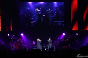 ▲水木氏&JAM Projectの「鋼の救世主」がスペシャルライブの最後を飾るが、曲終了後の大アンコールを受け水木氏と影山氏が「鋼の魂」を熱唱した。