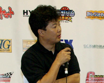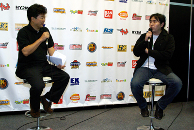 10月14日(日)に幕張メッセで開催された2007プラモデルラジコンショーにて、「機動戦士ガンダムUC」の著者、福井晴敏先生のトークショーが行われた。MGユニコーンガンダムver.kaの開発を担当されたのバンダイの岸山博文氏との対談で、福井先生のガンダムに対する思いがひしひしと語ってくれ、会場は熱気に包まれていた。