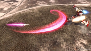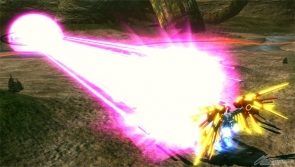 ▲チャージ射撃は、ためればためるほどタキオンスライサーの出力が上がり、攻撃範囲が拡大される。