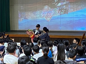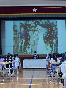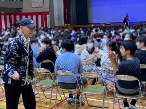 最後に、今回の講演を引き受けた理由として「足柄小学校からだって文化功労者に選ばれる人が出てきたのだ、ということを皆さんに報告しておいていいのかな、と思いました」と語り、質疑応答では元気よく挙手する児童からの質問に丁寧に答えたのち、花束贈呈をもって講演は締めくくられた。