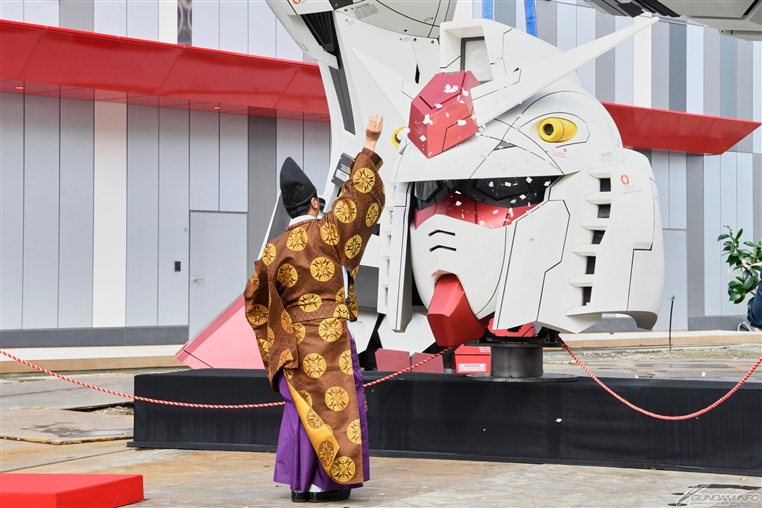 ※「上頭式」について……当プロジェクトでは建物の骨組みまで完成したことを祝う儀式「上棟式」になぞらえ、実物大ガンダム像の頭部設置時に行う安全祈願を「上頭式」と名付けている。