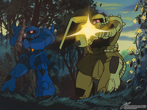 外装式の武装が使えることで、より多くのパイロットの搭乗を可能にし、多様な運用が可能になったのかもしれません。また、ジオン軍のMBT(メインバトルタンク)とも言えるマゼラアタックの主砲を、ランバ・ラル隊は補給の不足を補うために臨時に使用していたようですが、『第08MS小隊』の舞台である東南アジア戦線では一般的に配備されていたようです。
