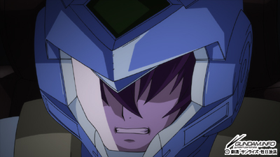 ▲アザディスタンでMSによる少年兵虐殺を止めることのできなかった刹那。「俺は…ガンダムになれない……」かつて自分を救ってくれたガンダムに乗っていながら、虐殺を止めることのできなかった自分の無力さに悔しさを感じていた。