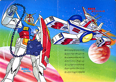 本題へ参りましょう。「栄光社のTVうたのえほん機動戦士ガンダム」はナンバー79という、偶然なのか狙ったのかわからない通巻番号が入っています。もともと「うた」を主体にした「えほん」ですから、物語の要素はありません。「翔べ!ガンダム」と「永遠にアムロ」の歌詞と楽譜を載せつつ、作品情報が掲載されています。