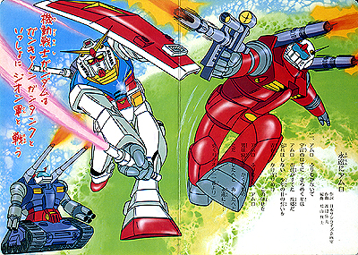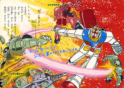 出だしは良かったのですが、突然次のページから不思議な作品になってしまいました。一家揃って(ギレンはいないけど)命令するザビ家や自信満々のアムロ、意外に弱いガンダムなど、作品とかけ離れすぎています。たぶん、文章を考えた方は作品をあまり御存知なかったのではないでしょうか。グフとガルマが同時に出てくるのもけっこう違和感がありますし。