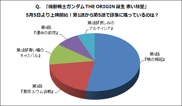 Q.『機動戦士ガンダム THE ORIGIN 誕生 赤い彗星』5月5日より上映開始!第1話から第5話で印象に残っているのは?
