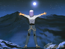 地球への潜入に成功したロランが、ある夜に屋敷を忍び出して月から地球へ帰還するときに使用した土に埋めてあるフラット(月のモビルスーツ)の上に立って、月に向かって叫ぶ言葉がこれです。