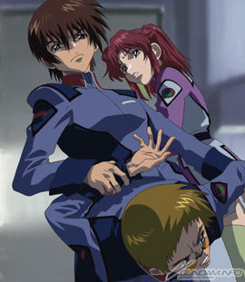 元はキラの通っていたカレッジのマドンナ的(キラも憧れていた)存在だったというフレイですから、二人の間で取り合いになっちゃうのは仕方ないことなんでしょうが、フレイ自身も、ここでは上手く両方を騙しているようでいて、実はキラとサイ、二人の男の間でややこしい女心をぐらぐらと揺らしていたのかも知れません……。いや~ん、ドラマチックだわ~(ハートマーク)。