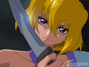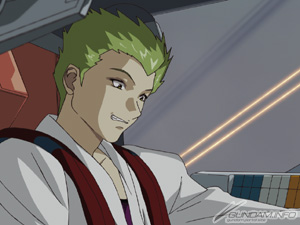 スティング(スティング・オークレー)は同じく奪取作戦で手に入れたカオスガンダムに搭乗しているMSパイロットで、アウルとステラにとっては頼もしいリーダー格というべき存在です(←いわゆる兄貴分ってやつですね)。性格はいたって冷静沈着(他の二人と較べれば……)。彼だけは例のブロックワードがわからないのが特徴のようなのですが、これってかえって気になりますよね~(←当てた方には素敵なプレゼントを差し上げる! 予定です~)。