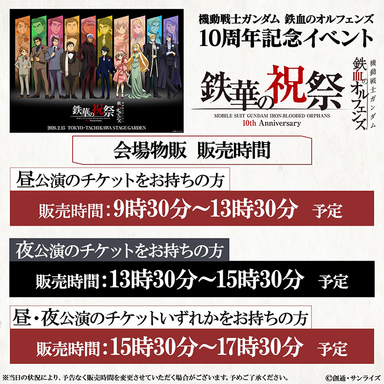 「機動戦士ガンダム 鉄血のオルフェンズ 10周年記念イベント -鉄華の祝祭-」の会場物販および展示に関する案内が公開された。