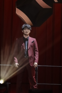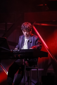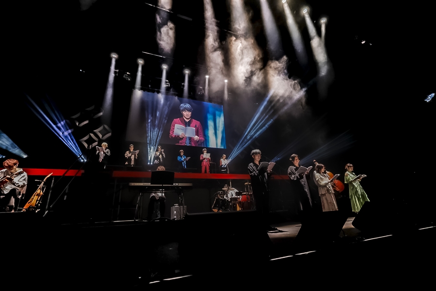 オリジナル朗読劇を終えた後は、横山さんとバンドによる劇伴生ライブ。横山さんのピアノの旋律をメインに、パーカッション、ヴァイオリン、ギター、ベースが重なるエモーショナルなサウンドは圧巻。「Crescent Moon」や「My Own Way」など、TVシリーズの劇伴7曲がメドレーで披露された。ステージ後方のスクリーンには本編映像が流され、会場は『鉄血のオルフェンズ』の世界へと引き込まれた。