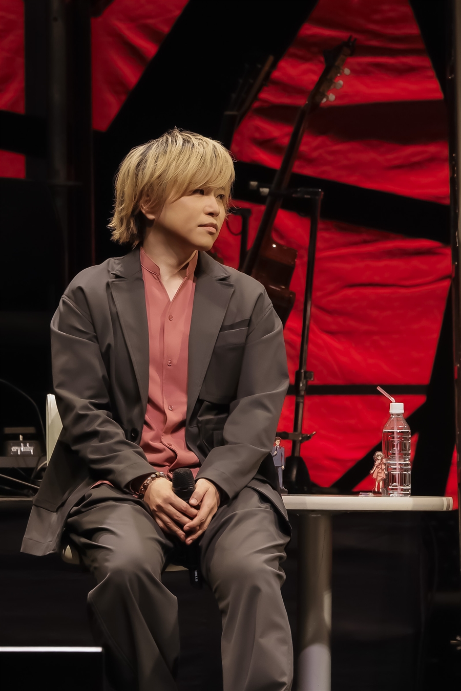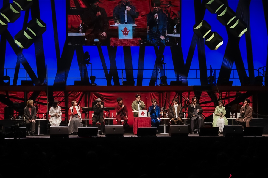 「幕間の楔」スペシャルステージに対する大きな拍手が響き渡る中、劇伴メドレーの生演奏を担った横山さんが挨拶。劇伴のレコーディングにも参加していた人もいると本日のバンドメンバーを紹介した。続いて、天津さんが横山さんにインタビュー。演奏楽曲のセレクト理由や、『鉄血のオルフェンズ』10周年への思い、そして来場者へのメッセージを伝えてくれた。