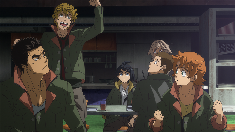また、同時上映の新作短編「幕間の楔」からは、鉄華団メンバーが食堂に集うカット、そして団長オルガ・イツカとクーデリア・藍那・バーンスタインの姿が映る2枚の新規カットが到着。さらに本編の場面にカット加え、キャラクターデザイン原案・伊藤 悠さんによる新規描き下ろしイラストを使用した「幕間の楔」エンディングの新規カットも公開となりました。