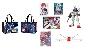 配布物:ショッパーバッグ、描き下ろしイラストカード(全3種)、ガンプラトライアルキット RX-78-2 ガンダム、ガンダムヘッドバンド