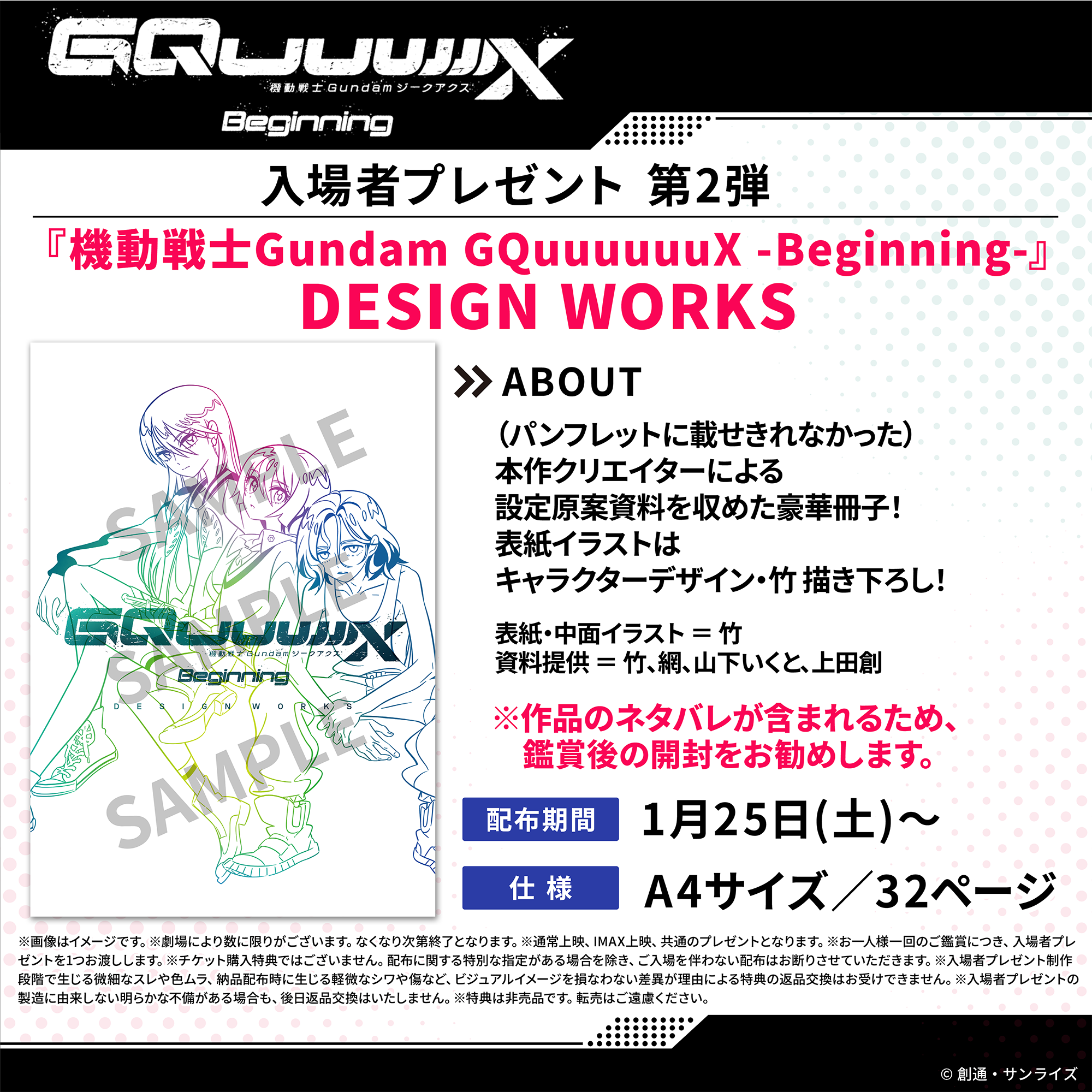 1月25日(土)より、入場者プレゼント第2弾として『機動戦士Gundam GQuuuuuuX(ジークアクス) -Beginning-』DESIGN WORKS の配布が決定しました。