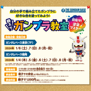 ガンダムベース「親子でガンプラ教室 目指せ塗装マスター」開催決定!東京店では1月6日から、福岡店では1月4日から!