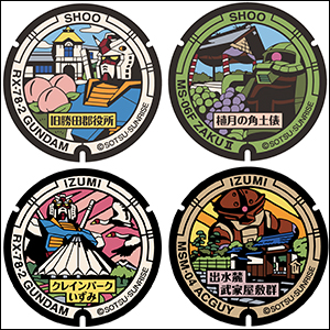 岡山県勝央町と鹿児島県出水市にそれぞれ2枚の「ガンダムマンホール」が設置!