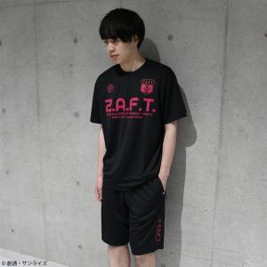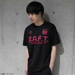 左胸にはエンブレム風のデザインを、フロント中央にはロゴをプリント。ブラックボディのZ.A.F.T.柄、ネイビーボディの地球連合軍柄、バーガンディボディのオーブ連合首長国柄の3種。