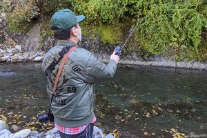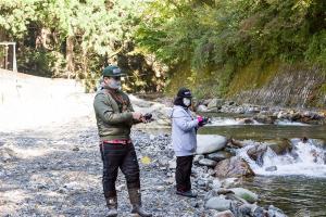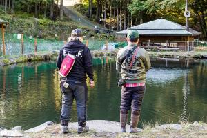 対決の舞台となるのは、山梨・奈良子釣りセンター。富士山の麓にある、自然渓流を活かした管理釣り場だ。