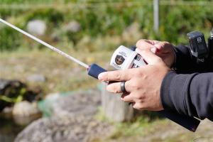 リールはスピンキャストタイプとなっており、非常に軽く、操作も簡便。サンライズ釣り部の2人はスピンキャストリールを使うのは初めてだったのだが、数回の練習で難なくキャスティングできるようになった。