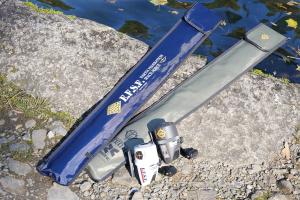 さっそく手渡されたガンダム釣り具は、とてもコンパクトで軽量。