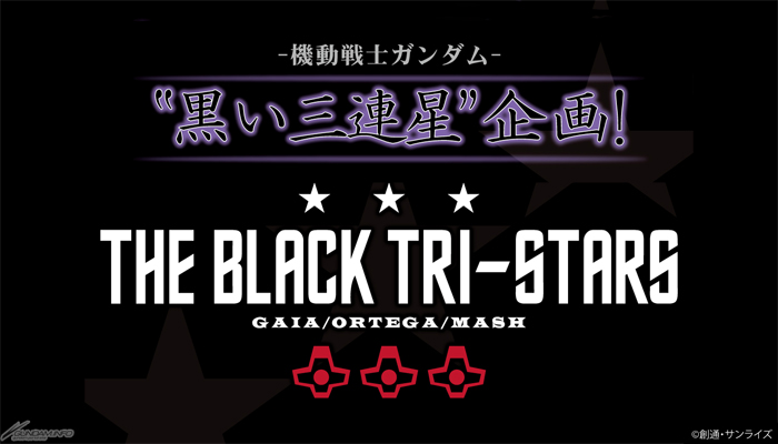 本企画は、『機動戦士ガンダム』より「黒い三連星」イメージした、「THE BLACK TRI-STARS」の文字が印象的なデザインのシリーズ。「ドム」のモノアイを並べたデザインや、「ガイア」「オルテガ」「マッシュ」の名前を並べたデザインなど、細かい部分にもこだわりを詰め込んでいる。