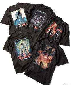 本アイテムは、『機動戦士ガンダム』劇場版三部作と『逆襲のシャア』、『閃光のハサウェイ』の計5作品のポスターをそのままプリントしたTシャツ。スモークグレーの生地にプリントし、ヴィンテージ感を演出。