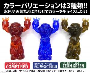 公式設定に基づいて機体のディテールをワームとして再現し、デザインだけではなく釣果実績にもこだわっている。カラーバリエーションは、シャア専用をイメージした「COMET RED」、ジオン軍をイメージした「ZEON GREEN」、量産タイプをイメージした「MASS PRODUCTION BLUE」の計3種。