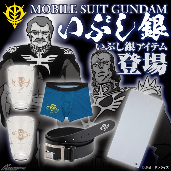 ランバ・ラルとグフ、ドズル・ザビとビグザムをワンポイントのデザインに落とし込んだ、「グラス」「オーガニックコットンタオル」「パンツ」「ベルト」の4種がラインナップする。