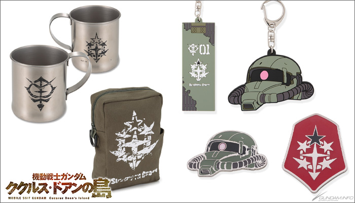 いずれも『ククルス・ドアンの島』劇場販売アイテムで、「ステンレスマグカップ」や「ベルトポーチ」、「ラバーキーホルダー」など計8アイテムがラインナップする。