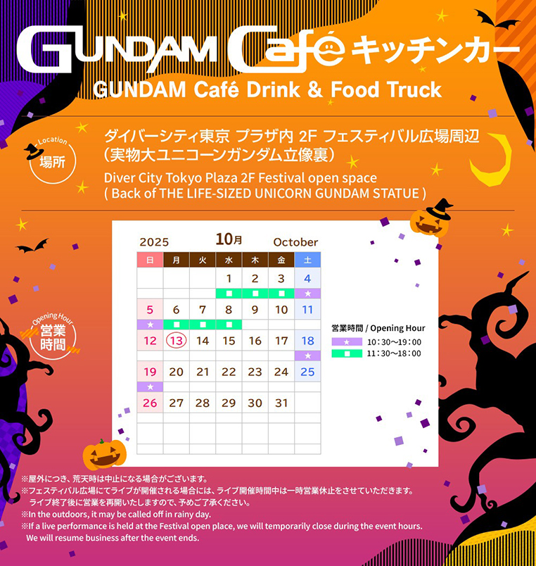 「GUNDAM Café」キッチンカーが、10月も東京・実物大ユニコーンガンダム立像裏に出店することが決定した。