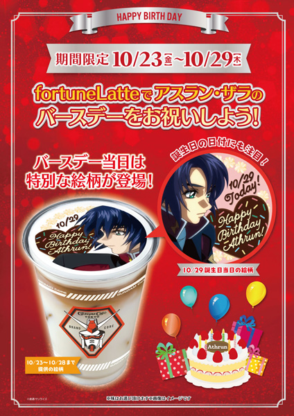 「アスラン・ザラ Birthdayフォーチューンラテ」は、アスランの誕生日当日となる10月29日(木)まで提供されるので、お店へ足を運ぶ際にはぜひチェックしてみよう。