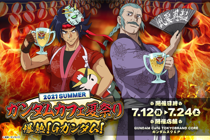 体験型エンターテインメントレストラン施設「GUNDAM Café TOKYO BRAND CORE(ガンダムカフェTOKYO)」と大阪の「ガンダムスクエア」では、7月12日(月)より、ディナータイムに「ガンダムカフェ夏祭り 爆熱!Gガンダム!」が開催されることが決定した。