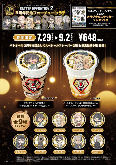 本フォーチュンラテは、バンダイナムコエンターテインメントより好評配信中のPS5/PS4向けオンライン専用ゲーム「機動戦士ガンダム バトルオペレーション2」の3周年を記念して販売されるもの。