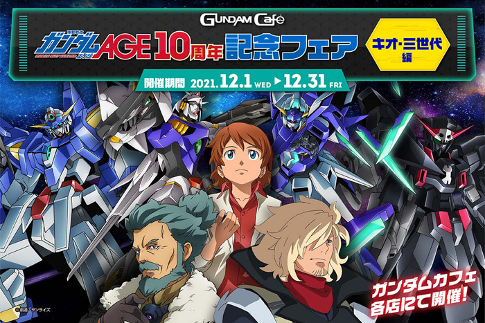 本フェアは、『機動戦士ガンダムAGE』の放送開始10周年を迎えることを記念したもの。現在「アセム編」が開催中で、12月1日(水)からは「キオ・三世代編」がスタートする。