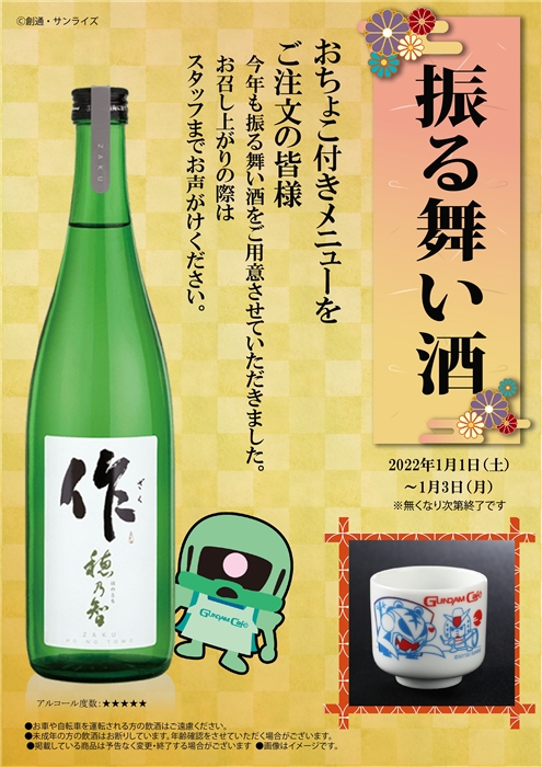 このほか、2022年1月1日(土)から3日(月)までの3日間、おちょこ付きメニューを注文した人を対象に「振る舞い酒」の実施も決定したので、こちらもお見逃しなく。
