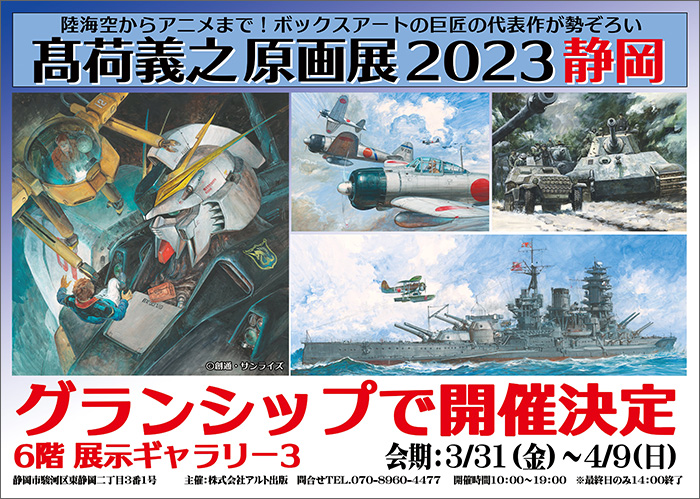 「ボックスアートの巨匠」や「リアルなアニメメカイラスト」で勇名を馳せる髙荷義之さんの原画展「髙荷義之原画展2023静岡」が、3月31日(金)より静岡・グランシップにて開催される。