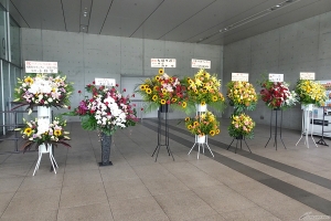 さらに、本作に関する多数の関連アイテムが並んだ展示エリア、イベントグッズや一般商品を販売した物販エリア、キッチンカーが登場した飲食エリアも展開。株式会社ガンダム CEOのミオリネをはじめ、ファンからの祝花も続々と送られた。