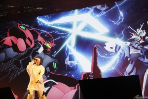 前半で決闘に敗れ、イベントの持ち時間を奪われ落ち込むスレッタだったが、見かねたミオリネの計らいで急遽時間が与えられることに。スレッタが用意した企画「みんなで歌おう! 株式会社ガンダム 社歌」が発表されると会場には笑いとどよめきが巻き起こった。作中でミオリネが起業した「株式会社ガンダム」のPRのために生まれた劇中歌で、放送直後には独特のフレーズとメロディーが頭から離れないと話題騒然になった名(迷)曲を1万人の観客と一緒に大合唱することに。さらにトロッコに乗ったエアリアルが登場。トロッコで会場を周遊し、会場を盛り上げた。