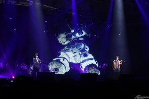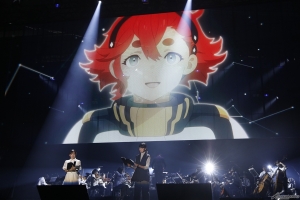 続くプログラムでは、オーケストラによる劇伴の演奏とコラボレーションした、『機動戦士ガンダム 水星の魔女』から名シーンを抜粋した生アフレコが披露された。