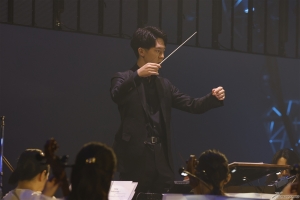 生アフレコ後には出演者たちからの挨拶が行われ、イタリアから来日し、オーケストラとともに圧巻の歌声で本イベントに花を添えたボーカリストのClara Sorace(クララ・ソラーチェ)さんと音楽担当の大間々さんはそれぞれ感謝を述べ、さらにシユイさん、yamaさん、アイナ・ジ・エンドさんたちOP・EDアーティストたちもステージに集結。