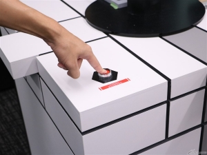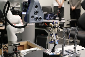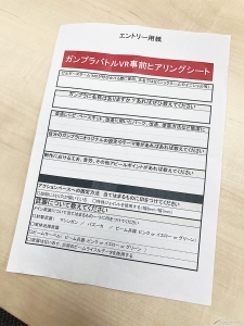 セットが完了すると、ガンプラが回転しながら、あらゆる角度からスキャンが行われていく。所要時間は約5分だが、その間にあらかじめ記入した“事前ヒアリングシート”の内容について、スタッフから紹介や質問が行われる。スキャン待ちの時間はもちろん、他の参加者のガンプラのテーマやこだわりポイントなどを聞くことができるので、会場に足を運んだ際はぜひ耳を傾けてみてほしい。