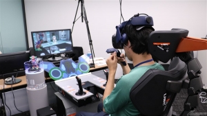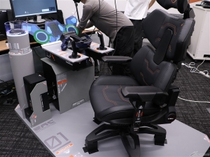 スキャンが完了すると、いよいよVRの世界へ。まるでコックピットのようなシートが用意され、座るだけでモビルスーツのパイロットになったかのような気分が味わえる。