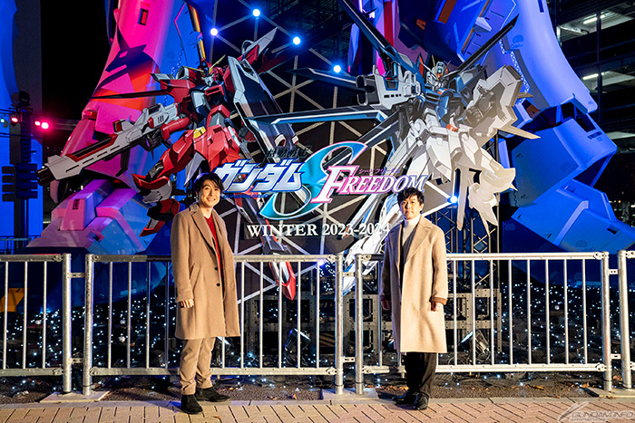 点灯式には、ライトアップのモチーフとなった『機動戦士ガンダムSEED FREEDOM』(2024年1月26日全国ロードショー)から、保志総一朗さん(キラ・ヤマト役)と鈴村健一さん(シン・アスカ役)が登壇し、「SEEDシリーズ」のスペシャルトークショーも実施。