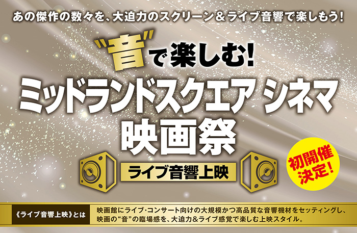 「ミッドランドスクエア シネマ映画祭」は、「映画を“音”で楽しむ!」をコンセプトに、劇場にライブ・コンサート向けの大規模かつ高品質な音響機器をセッティングし、映画の“音”の臨場感を、大迫力、ライブ感覚で浴びるように楽しむことができる映画祭。初開催となる今回は、映画・アニメ・ミュージカル・ライブ映像など、あらゆるジャンルから選りすぐりの計14作品を上映する。