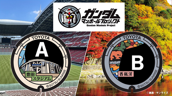 今回設置される「ガンダムマンホール」には、『機動戦士ガンダム』に登場するモビルスーツと、豊田市の観光名所である豊田スタジアムおよび香嵐渓がそれぞれデザインされた2枚となっている。