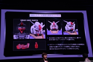 さらに、「組み立てるのが大変そうに思われるかもしれないが、スライド金型などの技術をふんだんに駆使しており、パーツ数自体は従来のRGシリーズとさほど変わらず、今まで通りのインナーフレームのあるガンダムが作れる」と、設定や可動、ディティールだけでなく、組み立てやすさもアピールする。