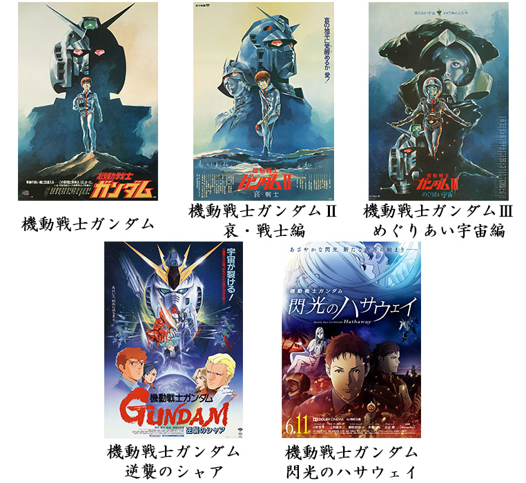 シリーズ初の劇場作品『機動戦士ガンダム』劇場版3部作、アムロとシャアの最後の決戦を描いた『機動戦士ガンダム 逆襲のシャア』、そしてアムロとシャアの意志を受け継いだハサウェイ・ノアの活躍を描いた『機動戦士ガンダム 閃光のハサウェイ』を全国の劇場で順次上映します。