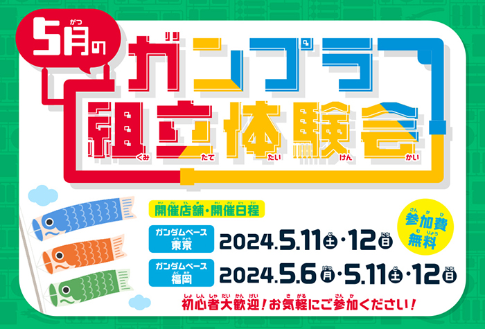 「ガンプラ組立体験会」が、ガンプラ総合施設「THE GUNDAM BASE」の東京店と福岡店で開催されることが決定した。