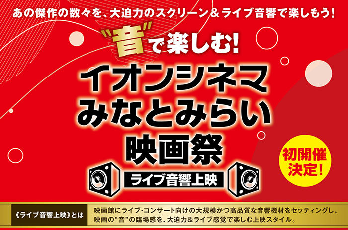 「ライブ音響上映」は、「映画を“音”で楽しむ!」をコンセプトに、劇場にライブ・コンサート向けの大規模かつ高品質な音響機器をセッティングし、映画の“音”の臨場感を、大迫力、ライブ感覚で浴びるように楽しむことができる上映スタイル。